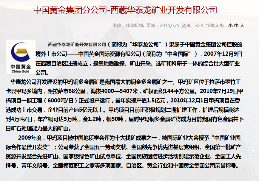 合作單位:中國(guó)黃金集團(tuán)分公司-西藏華泰龍礦業(yè)開